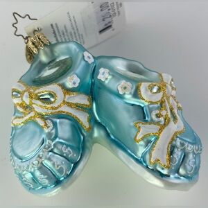 Christopher Radko Tiny Tootsies Blue Baby Booties Shoes Ornament 4” Shower Gift