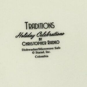 Traditions Holiday Celebrations by Christopher Radko set of 2 appetizer or salad plates. They measure approximately 8.5 inches. These are in very good condition, barely used. Would make a great gift for the Christopher Radko collector. CANNOT BUNDLE DUE TO WEIGHT