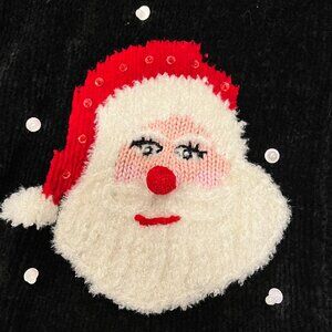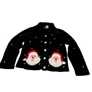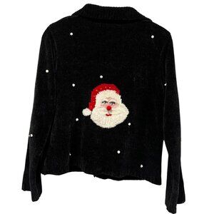 Christopher Radko Vtg Santa Chenille Cardigan, Black, S