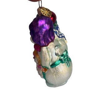 lebrate the charm of the holidays with this delightful Christopher Radko Winter Portrait ornament. Introduced in 2000 and now retired, this hand-blown glass piece features a cheerful snowman family bundled up in vibrant coats, hats, and scarves, glittered in Radko’s signature sparkle. Standing 4 1/2" tall, it’s a wonderful addition for collectors or anyone who loves festive décor.
