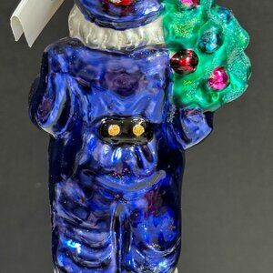 Approx. 6 inches. This large ornament is a great addition to any collection. This original piece is part of the Yankee Doodle Dandee collection. Featuring Santa Uncle Sam holding a Christmas tree and presents. Excellent condition. Original box, packaging and hangtag. No chips, cracks, or age spots. Pristine colors.