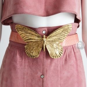 Christopher Ross Butterfly Belt Buckle Massive 8in L with Snakeskin Strap 1980s
