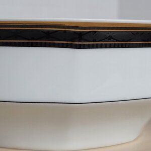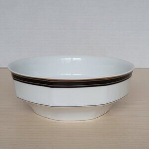Christopher Stuart Black Dress Gold Black Rim Round White Serving Bowl 8 in