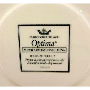 The saucer is a vintage piece from the Optima collection and is an original item from the 1990s. It features break and chip-resistant properties, making it a practical choice for daily use. The model is HK105 and the pattern is Morella.
