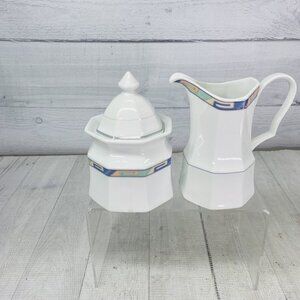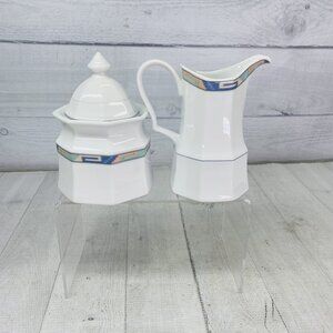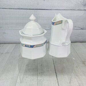 Christopher Stuart SOUTHWEST Green Blue Coral Lidded Sugar Bowl & Creamer Set