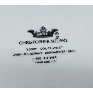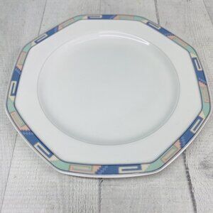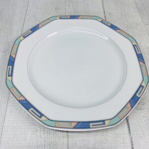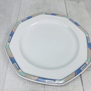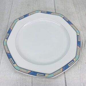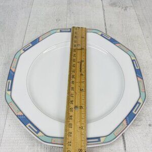 Christopher Stuart SOUTHWEST Green Blue Coral Rim White China Salad Plates Set 5