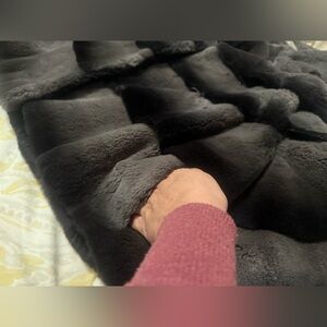 Christopher Whyte luxurious Jacket Women’s Sz M Gray Black Rabbit Fur Silk Lined