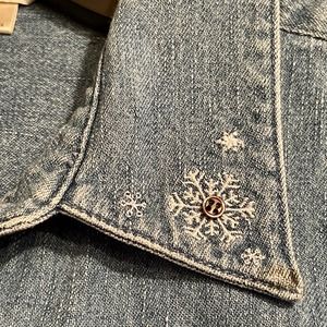 Christopher and Banks Jean Jacket Embroidered Snow Days Womens L 400:S1414
