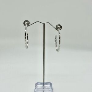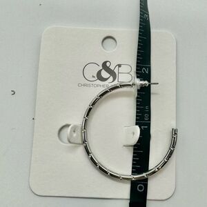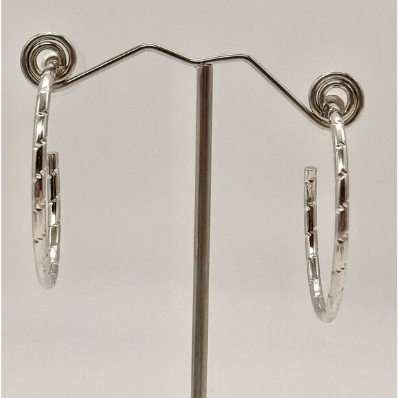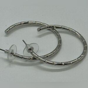 Christopher and Banks Silver-Tone Textured Open Hoop Earrings 1.5 inch
