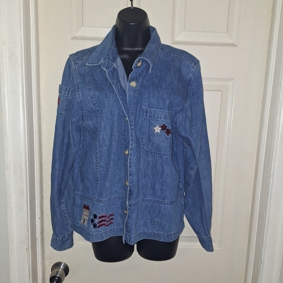 Christopher and Banks large jean button-down American Flag print independence day if you have any questions please message me bundle more items for bigger deals Bin-90