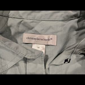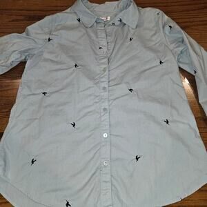 Christopher and banks light teal long sleeve shirt with hummingbird print. Light weight shirt. women's size M
