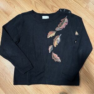 Christopher & banks hand embroidered size small black sweater with leaves. Good used condition. Some light wear, pilling, and some pulled threads in the embroidery. No holes or stains. Ramie cotton blend.