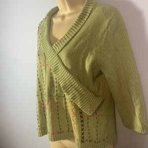 Christopher & banks sweater 3/4 sleeve hand embroidered light green crossover L