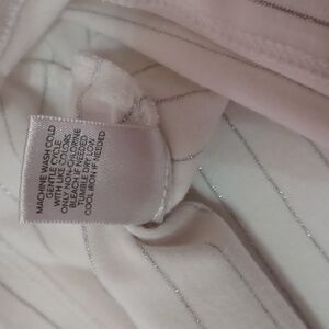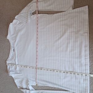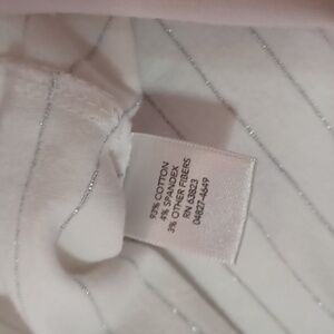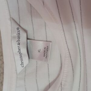 XL christopher&banks striped long sleeve t-shirt. crew neck. white with thin silver stripes. 93% cotton, 4% spandex, 3% other fibers. excellent pre-owned condition