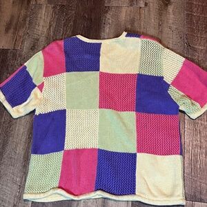 Christopher&Banks Sweater Womens L Rainbow Patchwork Knit Vintage Y2K