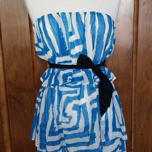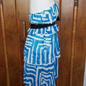 Christopher Dean Lt. Teal & White Strapless Dress
