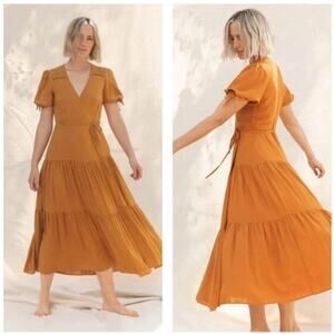 Christy Dawn Augusta Wrap Maxi Dress Orange Sz Medium