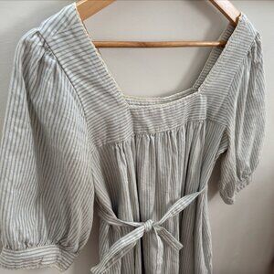 I think this is the cutest dress, wish I didn't have to sell it but I never reach for it since it's not the most convenient to breastfeed in. Can be worn with or without the belt! The organic cotton-linen blend fabric is on the thicker side so it feels very high quality, and the crocheted lace trim is such a pretty detail.