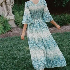 Christy Dawn Blue & Green Floral Basil Maxi Dress Size XL