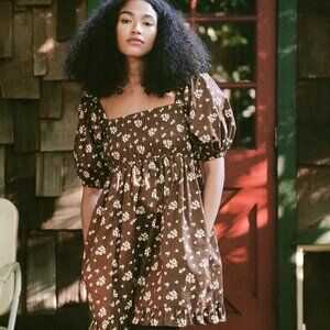 'The Diana Dress is the above-the-knee-length sister to our classic Katrina Dress. With a smocked bodice, puff sleeves and gently cinching tie detail, Diana gives a playful air to a romantic silhouette.'