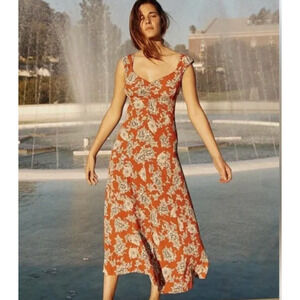 Christy Dawn Layla Rust Peony Long Dress Sweetheart Neckline Ruching Cottage