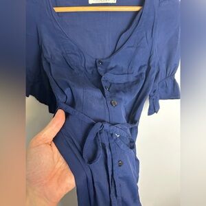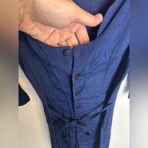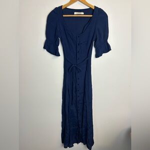 Christy Dawn Lennon Deep Blue Long Sleeve Midi Dress XS Recycled Fabric Luxury
