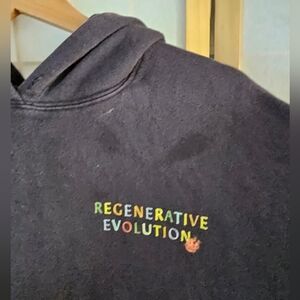 Christy Dawn We Are The Regeneration Hoodie see photo of area with discoloration, over all good preowned condition. Made in USA with 100% Organic Cotton. Made with cotton grown on organic certified farms that do not use GMOs or synthetic pesticides.