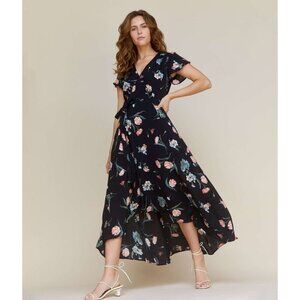 Christy Dawn The Autumn Floral Print Short Sleeve Wrap Dress Navy Blue Size S