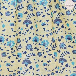 * Yellow-cream background with a multi-colored blue floral pattern digitally printed using organically certified dyes