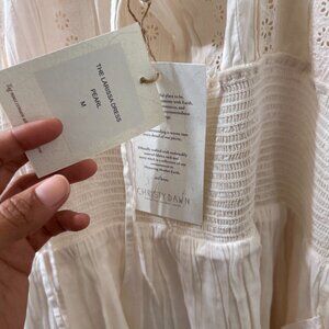 The Larissa Dress is a strapped midi dress with the most stunning, custom designed lace at waist panel framed by functional ties laced through a lattice trim. This 100% organic cotton dress features a smocked back waist for ease and comfort, adjustable strap lengths with ties laced through a lattice trim, and side seam pockets! “Bought it for wearing after pregnancy. But unable to fit at all.Lovely piece but no use to me.New with tags ”