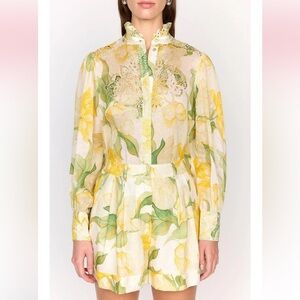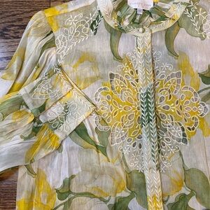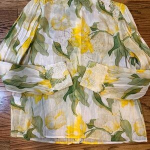 Christy Lynn Marley Top Blouse Waterlily Yellow Embroidered XL $525 fairy glam