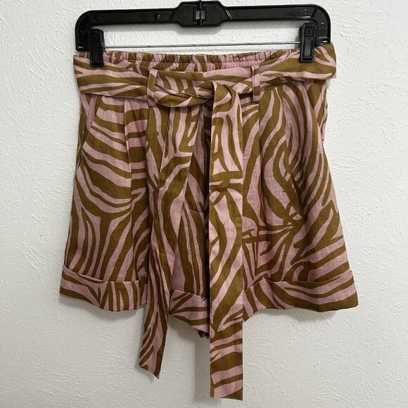 Christy Lynn Rose Zebra Shorts 100% Linen Pockets Paperbag Women’s Lined Size 4