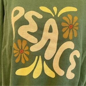 Original Peace graphic on the front of the sweater designed by artist Catie St. Jacques of Sun Keep