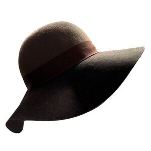 Christys Crown Collection Fedora Wide Brim Brown Wool Floppy Hat W/ Ribbon Accen