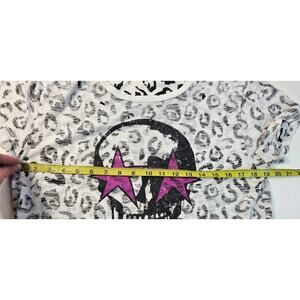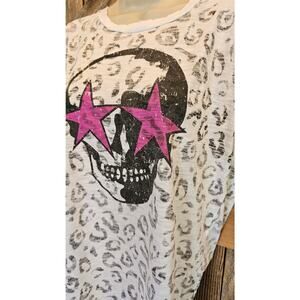 Chrldr cheerleader grunge distressed leapord skull t shirt top M EUC whimsigoth