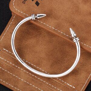 The double-arrow design is extremely eye-catching. Exquisite symbols are engraved in the details. The vintage-finished silver inherently has a retro vibe. The open design fits various wrist sizes.