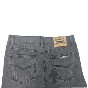 Chrome Hearts jeans from their collaboration with Levis, in a black wash color.