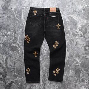 Chrome Heart Leather Patch Jeans