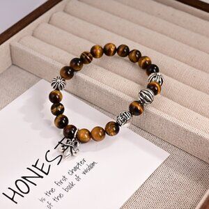 The tiger's eye stone beads have a unique texture. Paired with vintage-finished silver decorations, they are full of retro charm. There are also exquisite small pendants for embellishment, creating a strong sense of detail.