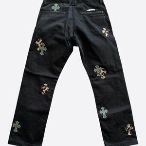 Chrome Hearts Black Cheetah & Green Cross Patch Chino Pants