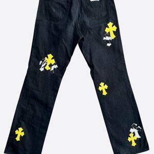 Chrome Hearts Black Cow & Yellow Cross Patch Fleur Jeans