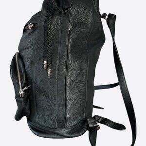 Chrome Hearts Black Cross Patch Leather Drawstring Backpack