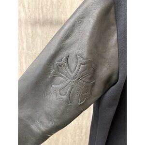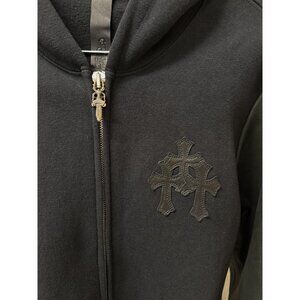 Chrome Hearts Black Hoodie W/ Leather Sleeves & Gothic Cross Details Full Zip Co