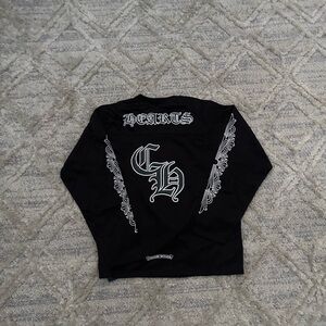 Chrome Hearts Black V-Neck Shirt with White Graphics