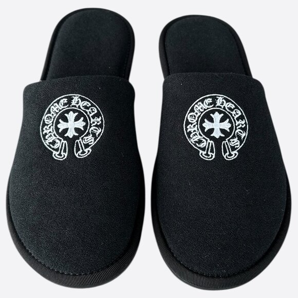 Chrome Hearts Black & White Horseshoe Logo Slippers