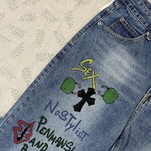 Chrome Hearts Cross Leather Embroidered Logo Jeans