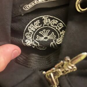 This Chrome Hearts bomber jacket features a striking black design adorned with elegant white floral motifs, creating a bold contrast. The full-length zipper adds practicality, while the bomber style offers a classic and versatile fit. Perfect for elevating your wardrobe with a touch of sophistication.