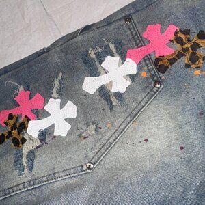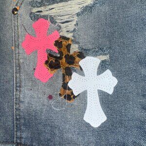 Chrome Hearts Jean Shorts Jorts Size 34 Cheetah Print Pink Crosses