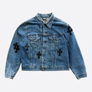 Size: Medium Condition: Pre-Owned. Great Condition. Details: Vintage Levi's Denim Jacket Black Chrome Hearts leather cross patches throughout Chrome Hearts silver hardware throughout Two front pockets True to size fit Composition: 100% Cotton