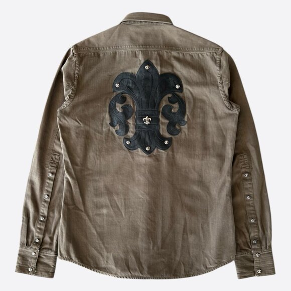 Chrome Hearts Olive & Black Leather Fleur Patch Button Up Shirt